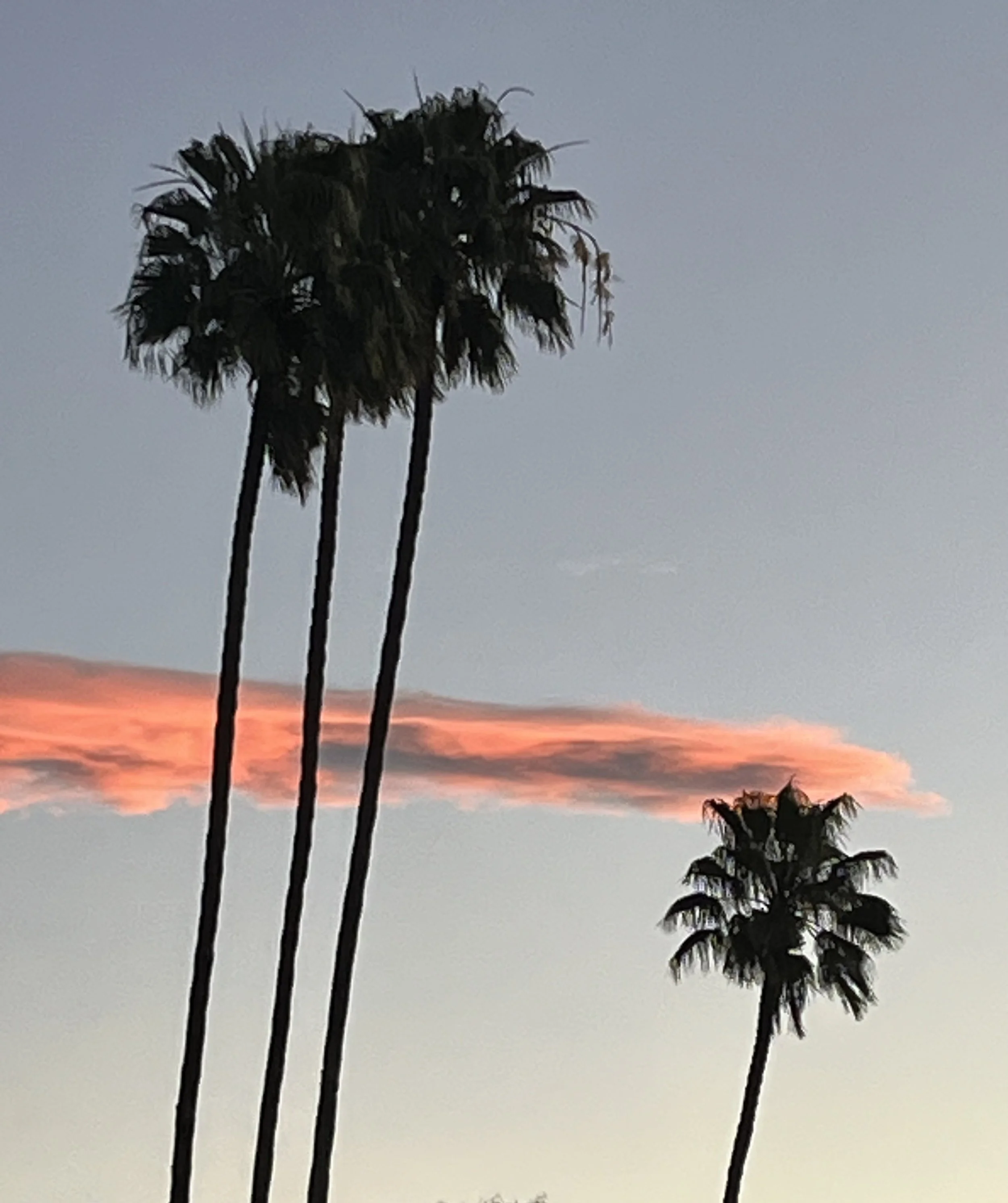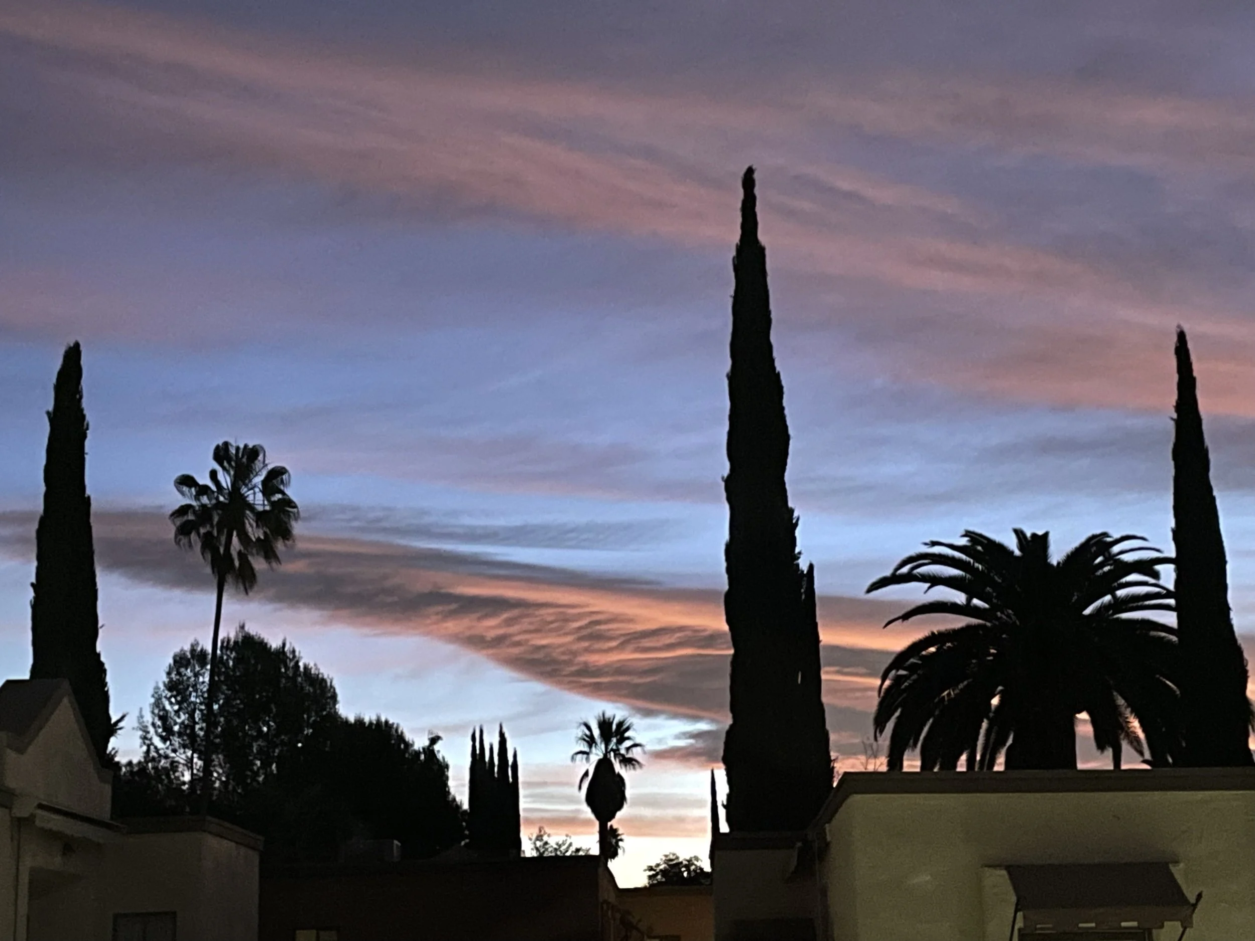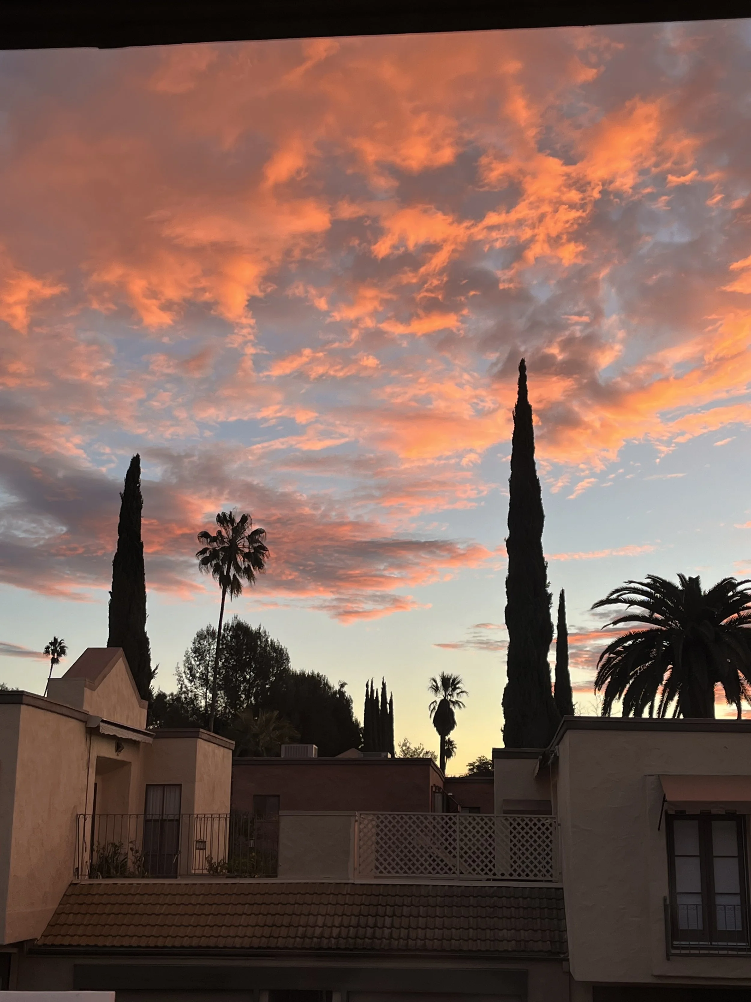 I first noticed the light in the room. The sun was going down, and I was facing west. I sat up more so I could see the pinks and oranges in the sky.